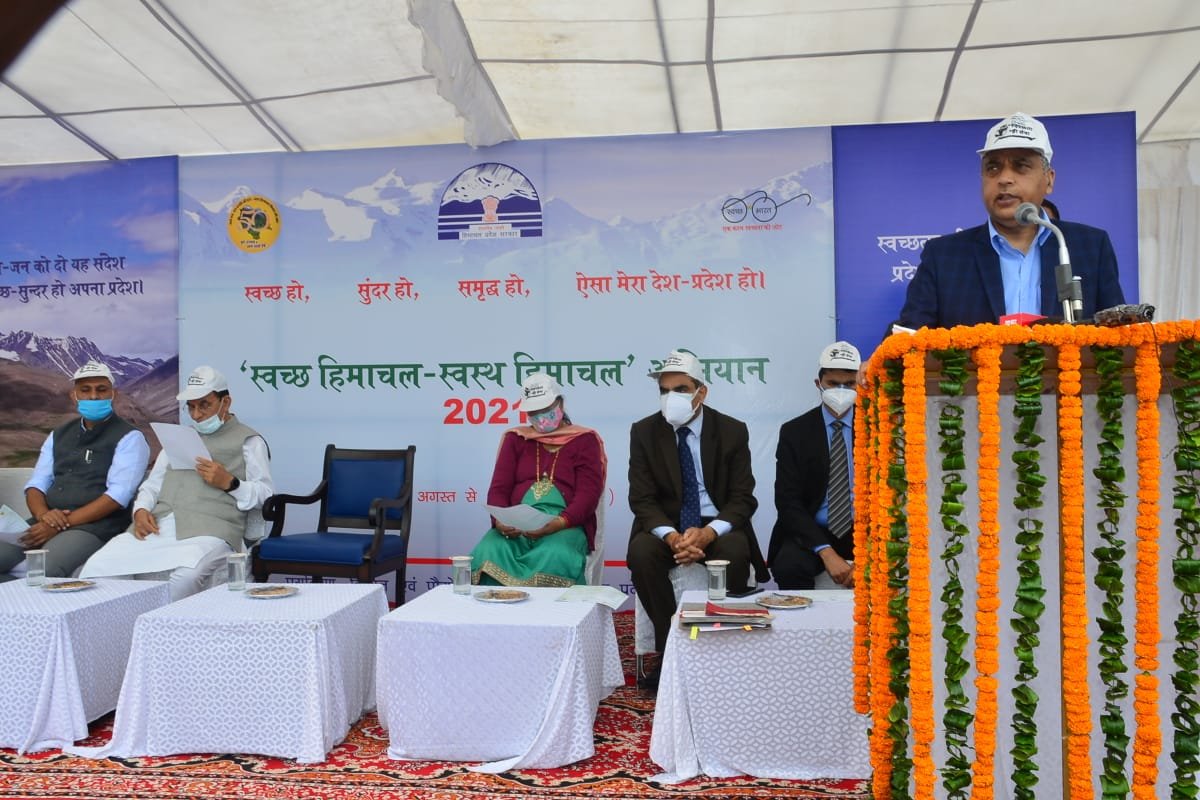 शिमला : मुख्यमंत्री जय राम ठाकुर ने आज शिमला के रिज़ से नगर निगम शिमला के 250 सफाई मित्रों के दल को हरी झण्डी दिखाकर स्वच्छ हिमाचल-स्वस्थ हिमाचल अभियान-2021 का शुभारम्भ किया।