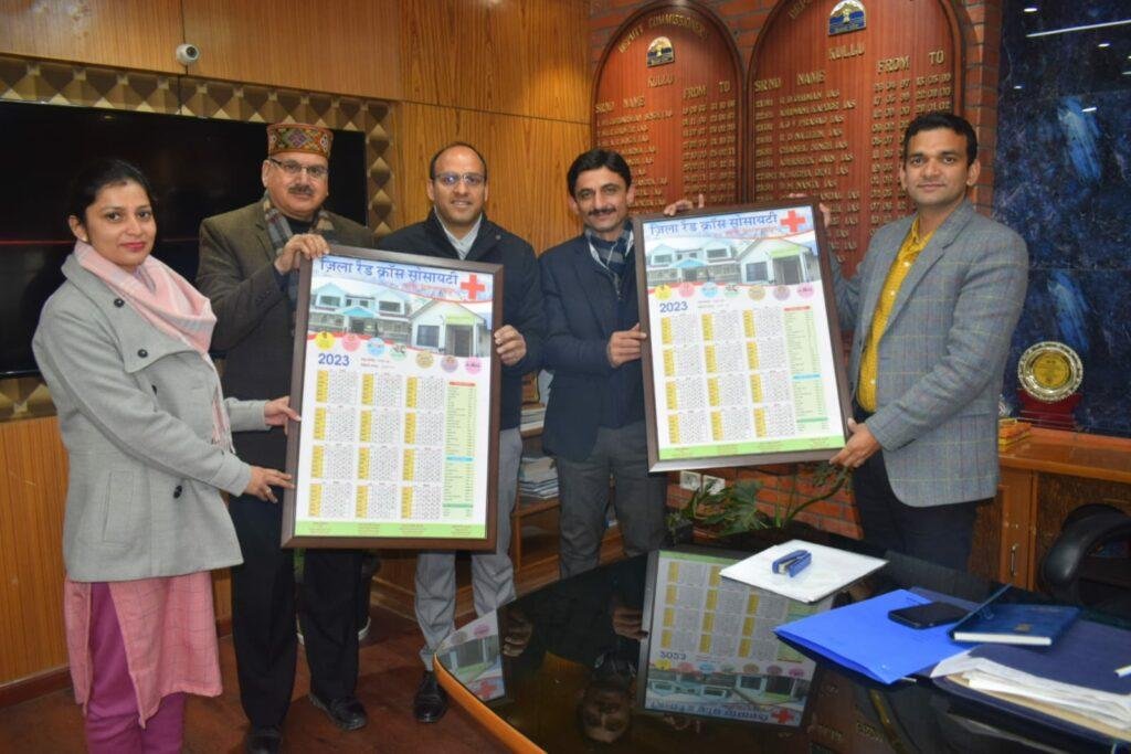 रेणुका गौतम, कुल्लू : उपायुक्त एवं जिला रेड क्रॉस सोसाइटी कुल्लू के अध्यक्ष आशुतोष गर्ग ने आज जिला रेड क्रॉस सोसाइटी द्वारा प्रकाशित वर्ष 2023 के कैलेंडर का विमोचन किया। उन्होंने कहा कि जिला रेड क्रॉस सोसाइटी की ओर से इस प्रकार के कुल 4000 कैलेंडर बनाए गए हैं जोकि जिला के विभिन्न कार्यालयों को भेजे जाएंगे।