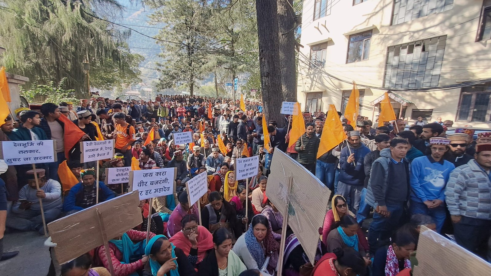 देव समाज संघर्ष समिति के बैनर तले आज जिला मुख्यालय कुल्लू में एक बड़ा धरना प्रदर्शन किया गया। इसमें बहुत बड़ी तादाद में जिला भर के लोग शामिल हुए। इस विरोध प्रदर्शन में अंतर्राष्ट्रीय दशहरा उत्सव कुल्लू के दौरान तहसीलदार एवं देवलुओं के मध्य उपजी विवाद को लेकर प्रशासन के खिलाफ जमकर नारेबाजी की गई। साथ ही जिला प्रशासन पर मामले को लेकर उचित कार्रवाई न करने के भी आरोप लगाए गए। प्रदर्शन में शामिल सभी लोगों का साफतौर से कहना है जिस तरह से मामले को दबाया जा रहा है, प्रशासन और सरकार की मिलीभक्त बिल्कुल सामने आ रही है।