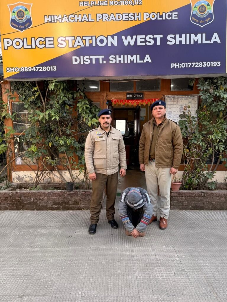 शिमला: जिला पुलिस की स्पेशल सेल द्वारा संकट मोचन–तारा देवी–शोघी मार्ग पर नियमित बस चेकिंग के दौरान एक संदिग्ध युवक को पकड़ा गया। तलाशी लेने पर आरोपी गौरव ठाकुर पुत्र सुभाष चंद ठाकुर (आयु 29 वर्ष), निवासी ममलिग, जिला सोलन के कब्जे से 6.330 ग्राम चिट्टा (हेरोइन) बरामद किया गया।थाना बालूगंज में एनडीपीएस एक्ट के तहत मामला दर्ज किया गया है।