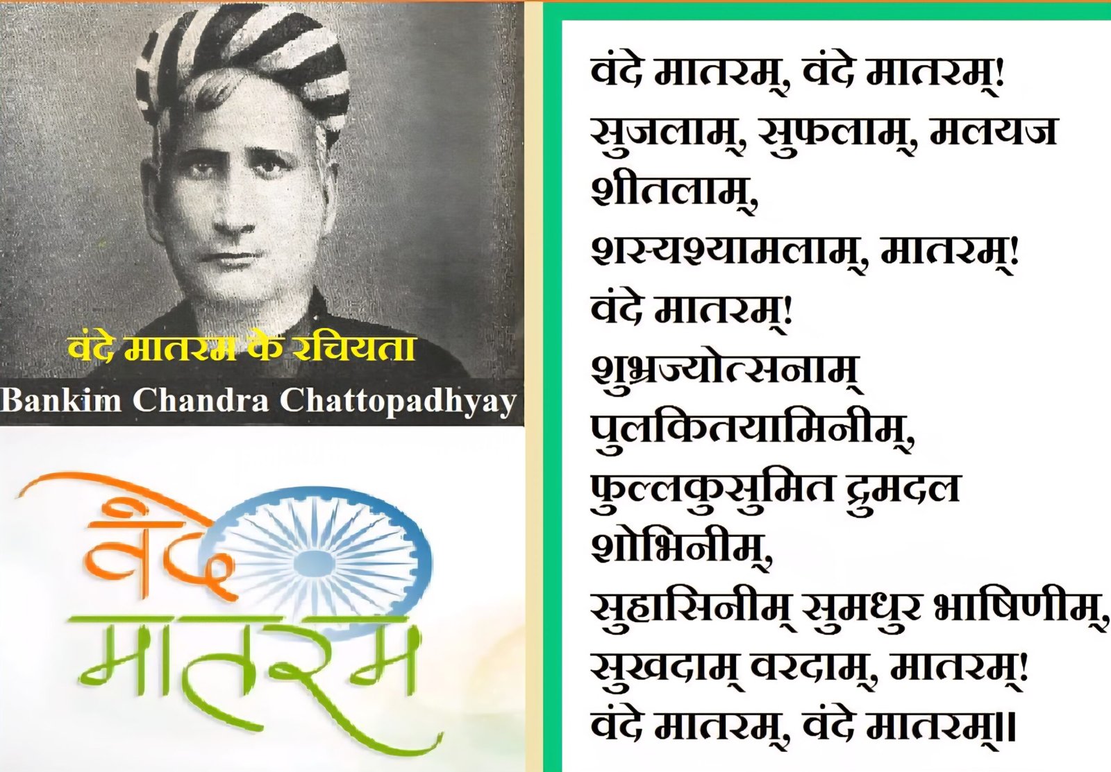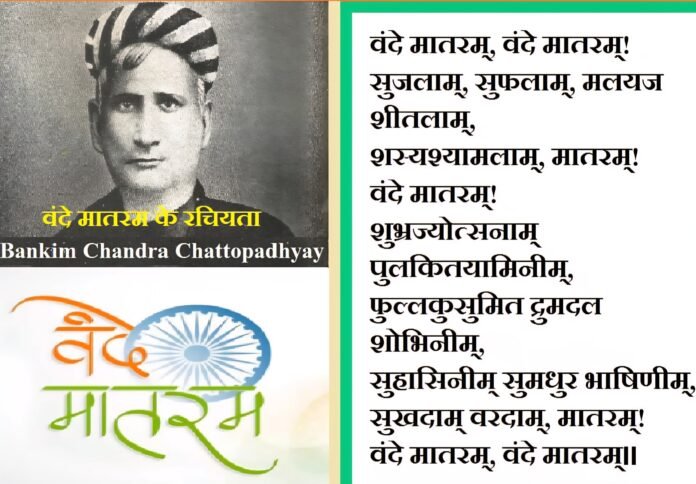 गौरतलब है कि बंकिम चंद्र चट्टोपाध्याय द्वारा बंदे मातरम् गीत 7 नवंबर 1876 में लिखा गया था और 1882 में प्रकाशित उपन्यास ‘आनंदमठ’ के भाग के रूप में प्रस्तुत किया गया था। यह उपन्यास संस्कृति और बंगला भाषाओं में लिखा गया है। इस गीत को 24 जनवरी 1950 को संविधान सभा द्वारा राष्ट्रीय गीत का का दर्जा दिया गया।