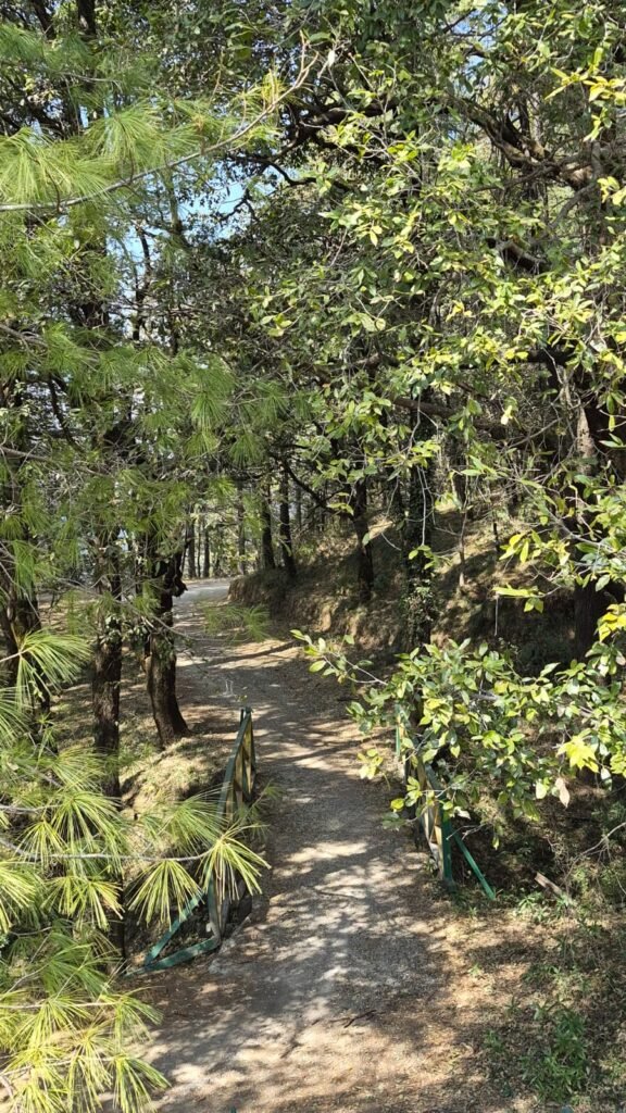 यहां का 7 किलोमीटर लंबा ट्रैक अपने आप में अनूठा है। जिस सड़क पर पर्यटक पैदल, साइकिल या इलेक्ट्रिक गोल्फ कार्ट से सफर करते हैं, वह वास्तव में पानी की मुख्य पाइपलाइन के ऊपर बनाई गई है। ब्रिटिश काल में यही पाइपलाइन एडवांस स्टडीज तक जाती थी और आज भी शहर को पानी की आपूर्ति कर रही है। ट्रैक के दौरान जगह-जगह व्यू पॉइंट और दो वॉच टावर बनाए गए हैं, जहां से हसन वैली और आसपास के जंगलों का मनमोहक दृश्य दिखाई देता है।